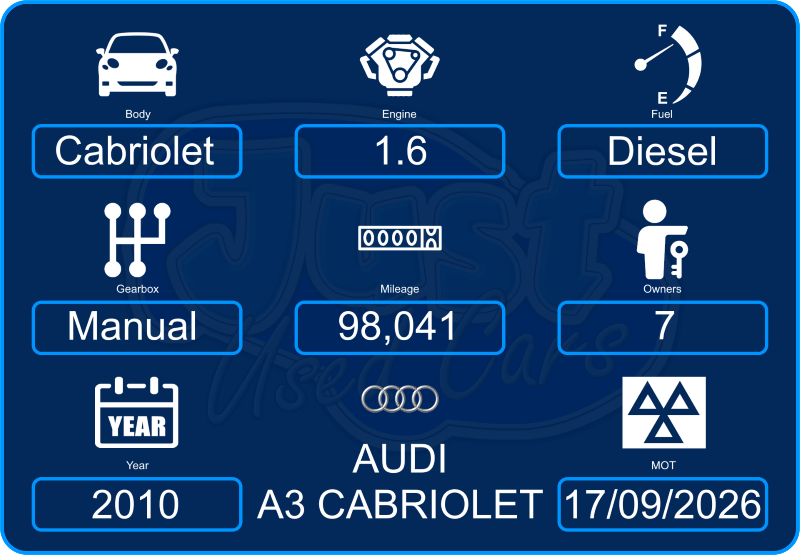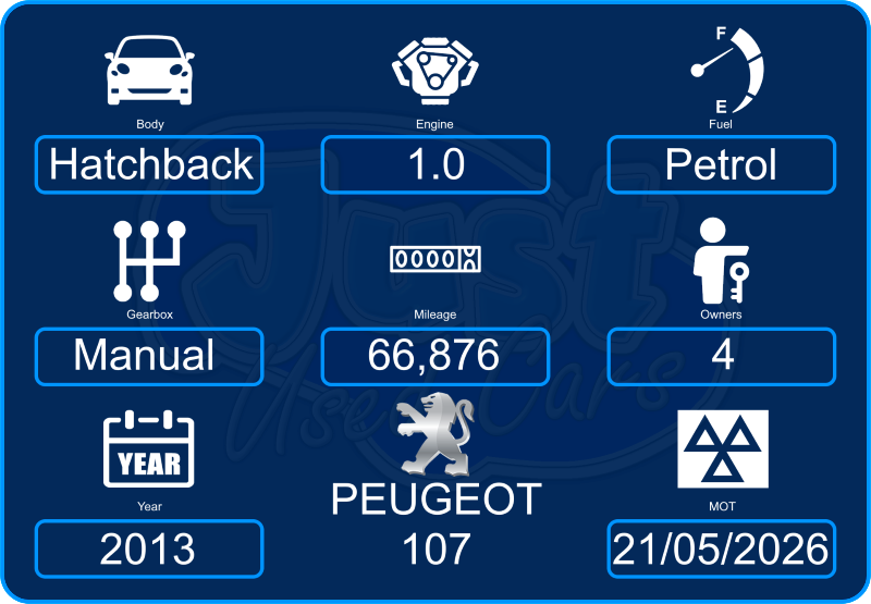 Just Used Cars Used Vehicles 2013 PEUGEOT 107 £2,395 2010 AUDI A3 £2,395 2010 PEUGEOT 207 £2,295 2007 SMART FORTWO £1,895 2008 MAZDA 6 £1,795 2010 FIAT PUNTO £1,595 Private Or Trade 2006 FORD MONDEO £4,295 2007 MINI COOPER £1,195 Vehicle Categories Used Vehicles Future Classic Trade Vehicles For All Vehicle Sales, Please Make An Appointment.
